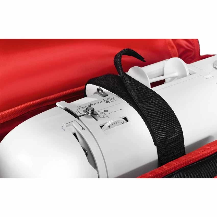 It is ideal to use with the as the bag comes with an integrated strap to securely attach it to the telescopic handle of the trolley. In this configuration the bags are a perfect set allowing plenty of room for both your machine and large sewing projects to be transport easily to workshops, classes and group meetings.