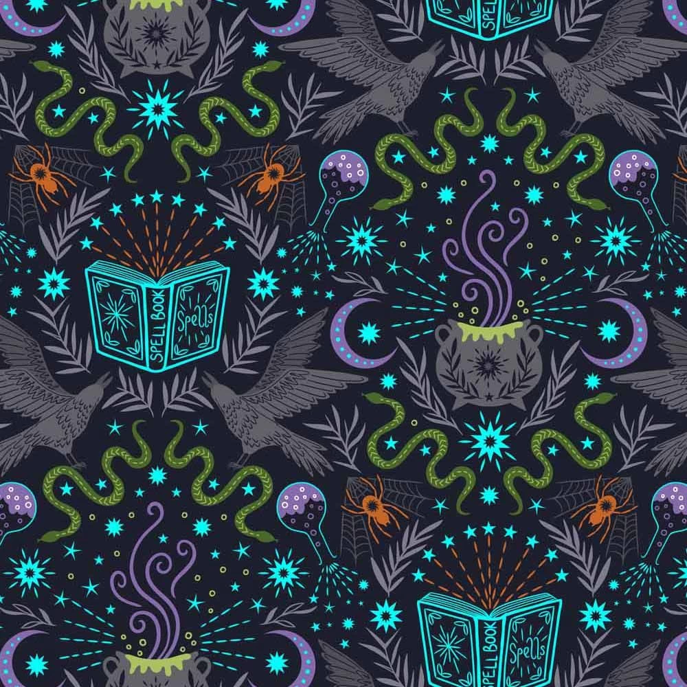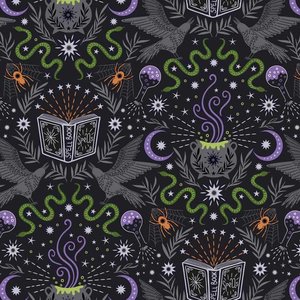 Cast A Spell Lewis & Irene Fabric | Spell Caster Black Silver Metallic