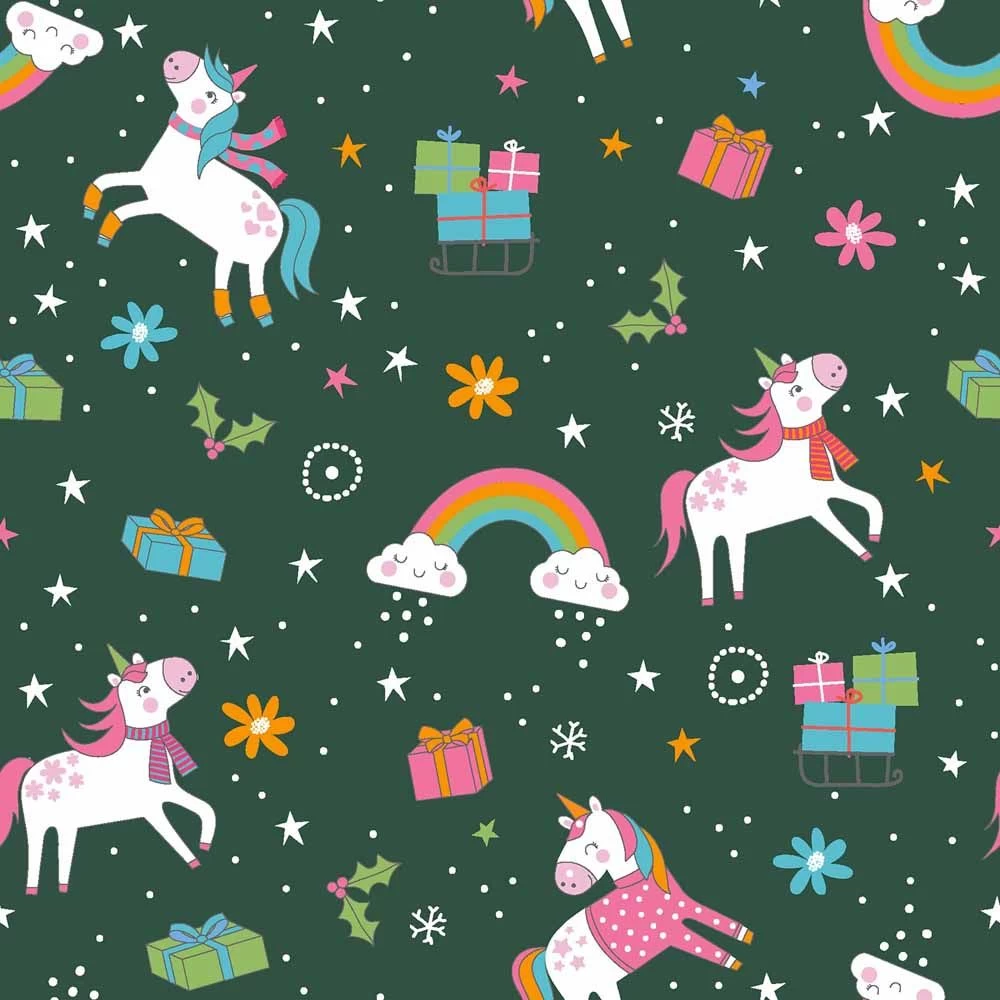 Christmas Jersey Fabric | Festive Unicorn Dark Green
