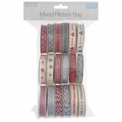 Trimmings Bundle Satin Ribbon Festive Designs – 12 Roll Pack