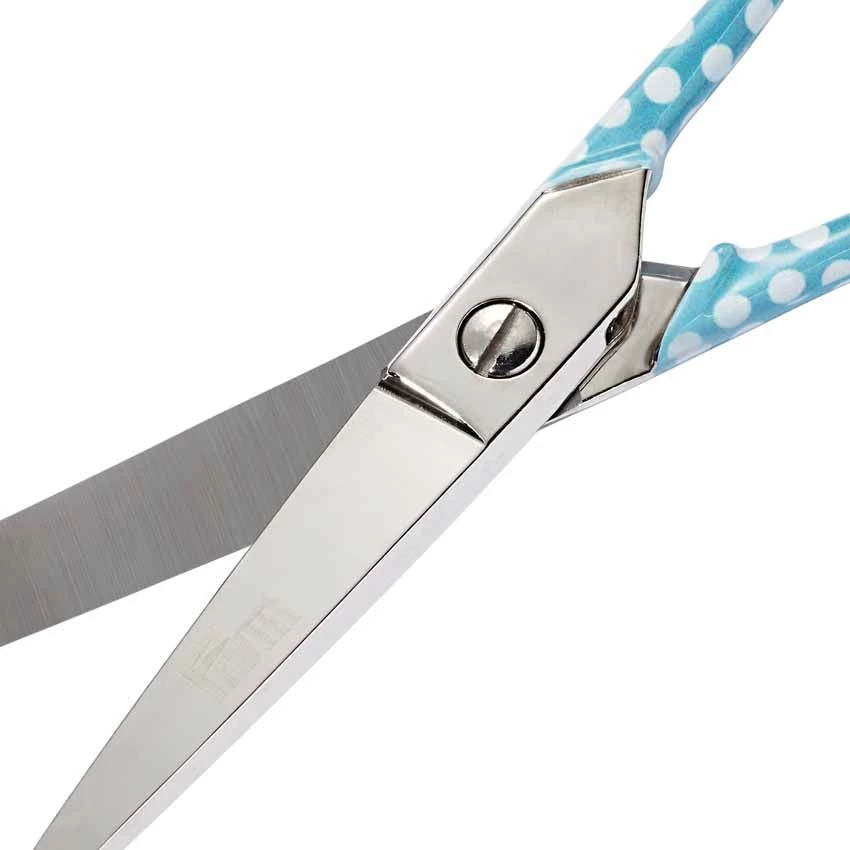 The steel handles and cutting edges offer long-lasting durability and the polka dot design in mint green on the double coated handles adds a fresh touch to every sewing basket.