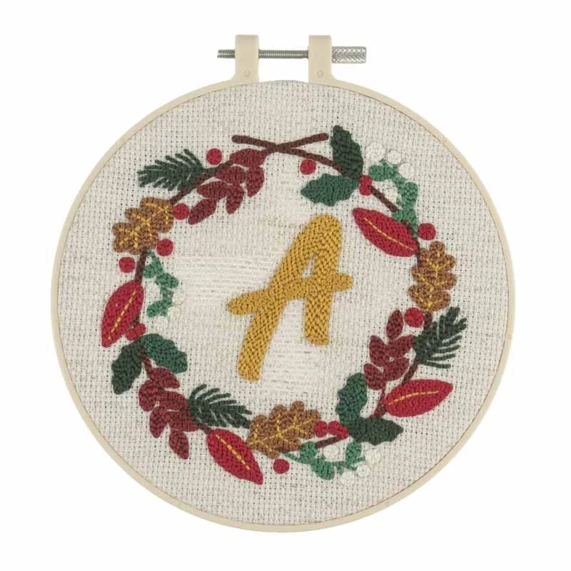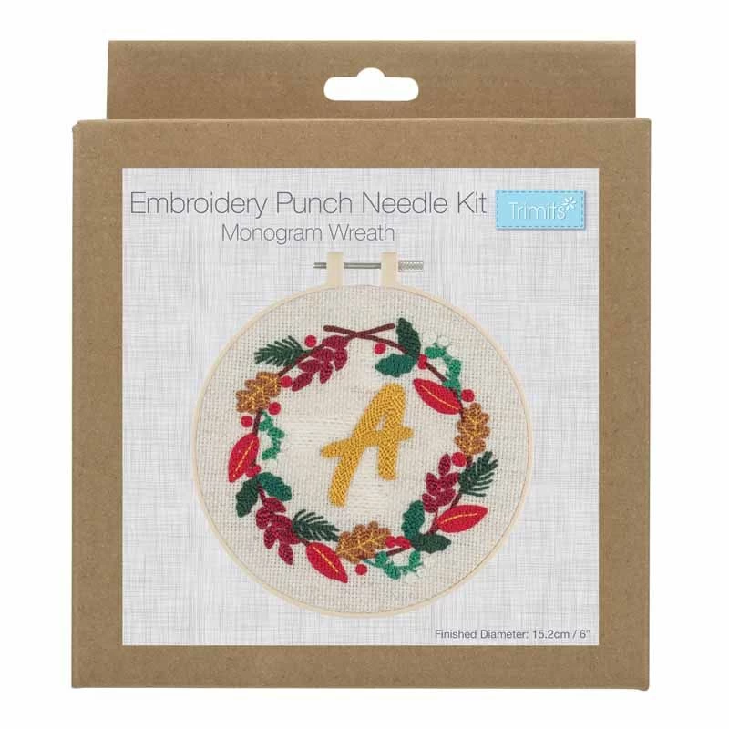 Embroidery Punch Needle Kit With Hoop | Monogram Wreath