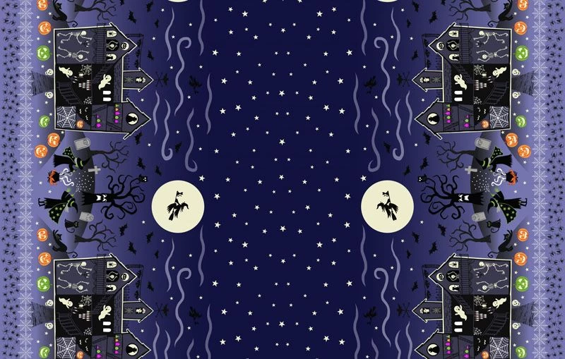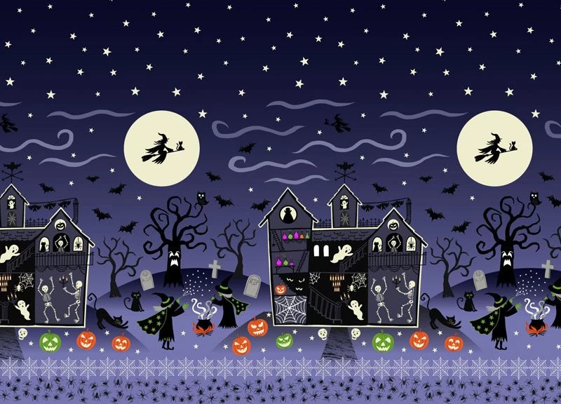 Haunted House Fabric | Glow In The Dark Double Edge Border Blue -Sewing Art A599 3 2