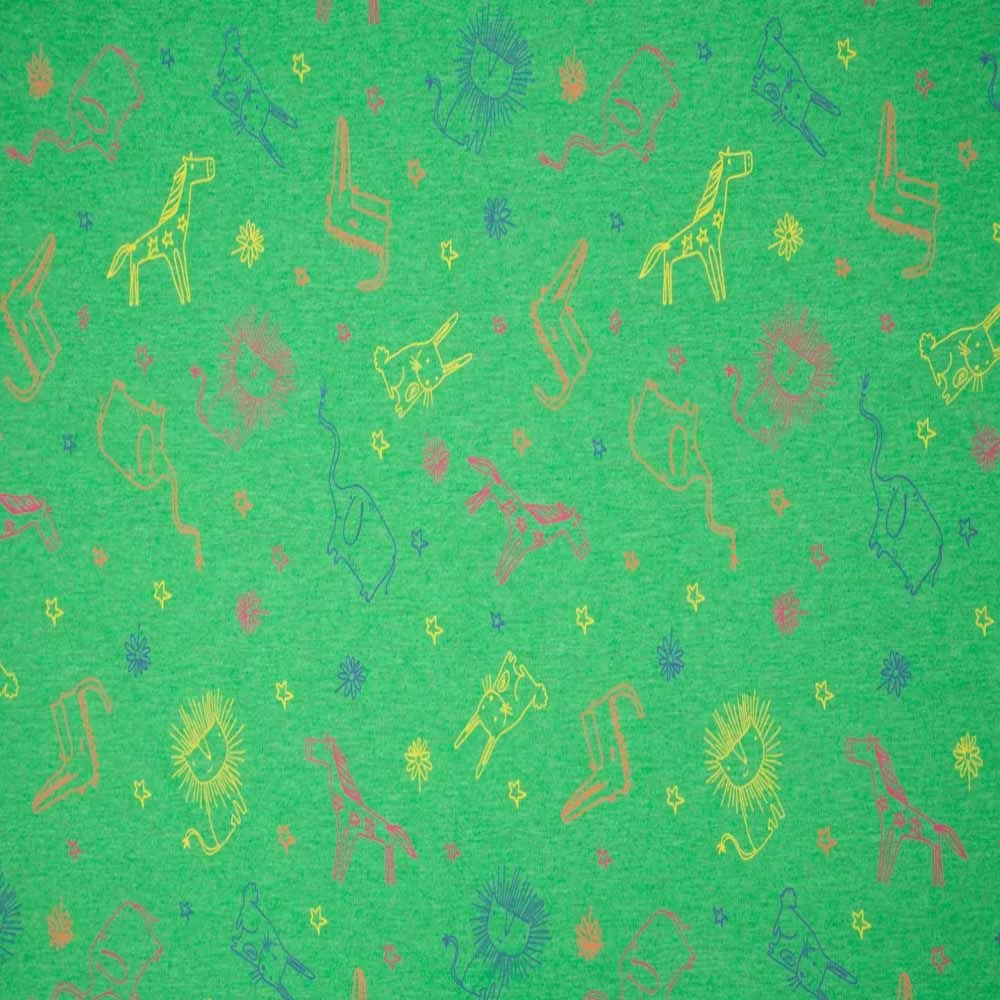 The fabric is a mid-weight jersey with impeccable print quality. Extremely high cotton content ensures the fabric has a lovely feel.