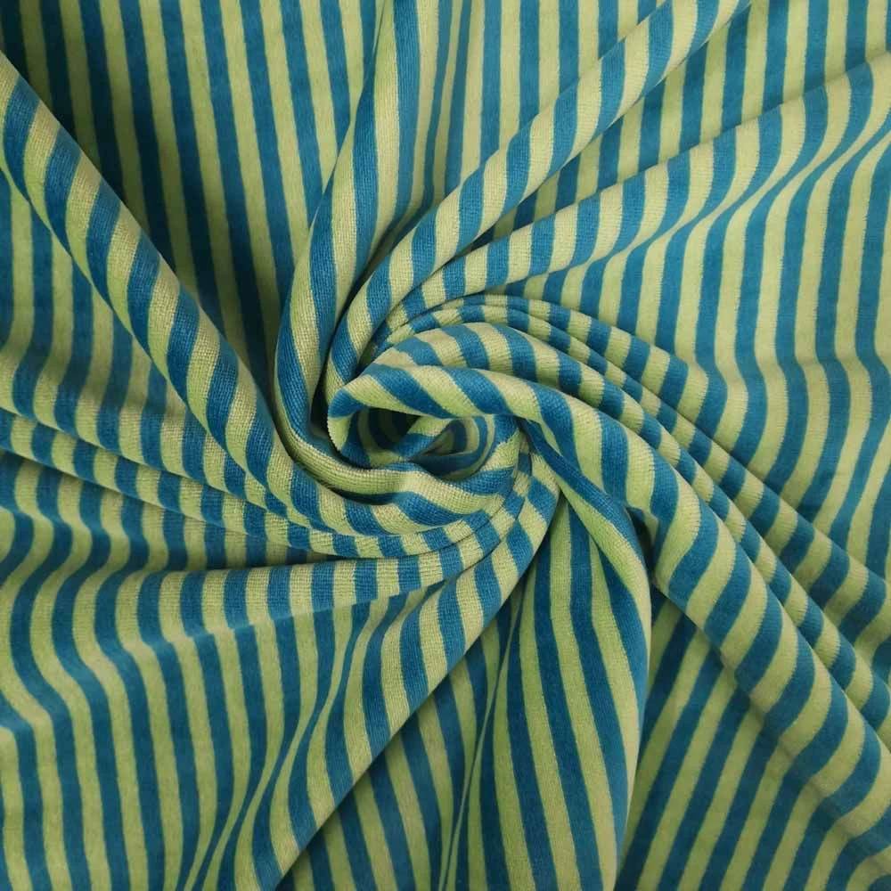 Mid – heavy weight Jersey Fabric with classic stripe and velour touch finish. High cotton content ensures the fabric has a lovely feel.