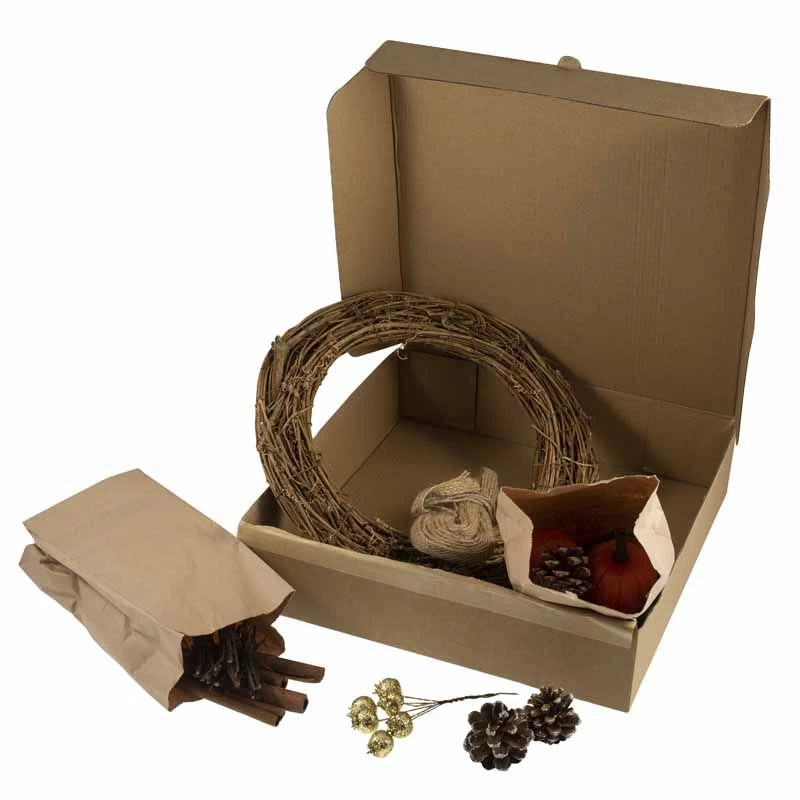 This kit contains a wreath base and all the decorations you need to create the finished wreath. The Kit includes: